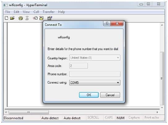 2. Open Hyper Terminal and connect the corresponding COM port as shown below.