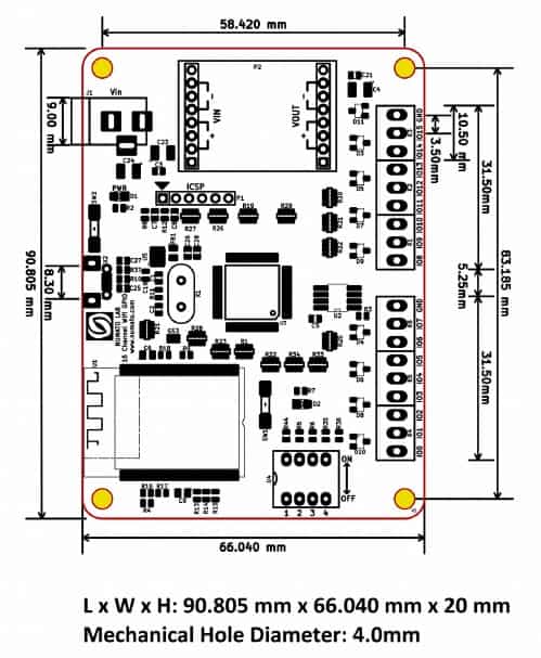 - Individual DIP switch channels for Firmware upload, WiFi configuration, Factory reset, and Network Reset.