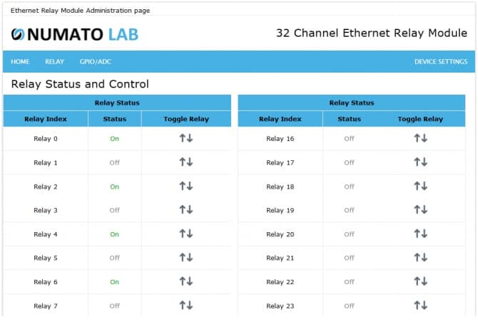Numato Lab’s 32 Channel Ethernet Relay Module is a versatile product for controlling electrical and electronic devices remotely from a PC over Ethernet link. Ease of use and wider operating system compatibility are the primary goals behind this product’s design. This simplicity allows the use of off-the-shelf Terminal Emulation programs such as Hyper Terminal and Tera Term for controlling the module with a simple set of human-readable commands through Telnet/Web page. For power users, this module can be controlled by writing programs in various programming languages.