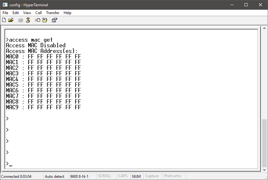 | MAC0 to MAC9 | FF FF FF FF FF FF |