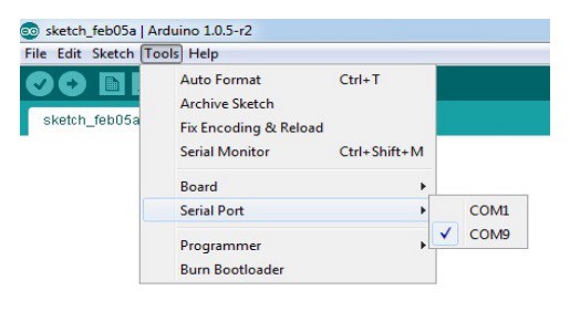 8. Also, select the serial port from the Tools menu (see the image below)