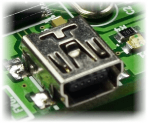 The on-board full-speed USB controller helps a PC/Linux/computer to communicate and control this module seamlessly. Use a USB A to Mini B cable to connect with a PC. Please visit http://www.numato.com to buy cables and accessories for this product. By default, the logic section of the module is powered from USB so make sure not to overcrowd unpowered USB hubs (the picture on the right shows USB Mini connector).