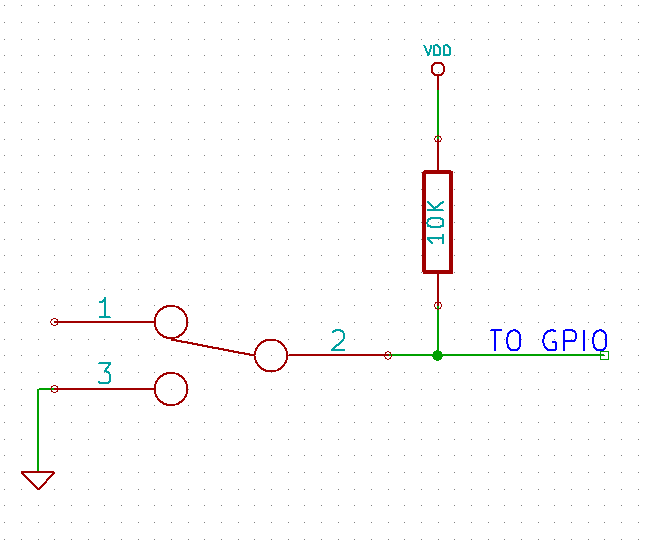 It is possible to read the position of a switch that is connected to a GPIO. A SPST or SPDT switch is recommended to use with GPIOs. Push switches do maintain the contacts closed only for a very short time so using them is discouraged. The fundamental idea of using a switch with GPIO is to have the switch cause a voltage level change at the GPIO pin when pressed. Usually this is achieved by using an external pull-up resistor along with the switch. The pull up resistor is connected between the GPIO and VDD and the switch is connected between the GPIO and ground. When the switch is not pressed, the pull-up resistor will cause the GPIO to stay at VDD voltage level. When the switch is pressed, the GPIO is short circuited to ground and stays at zero voltage. This change in voltage and thus the position of the switch can be read using “gpio read” command.