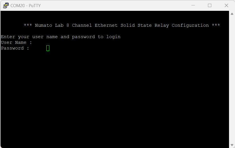 NB: By default, the module is configured with factory settings. To login to USB configuration settings, users need to send a ‘reboot’ command from telnet or do a factory reset.