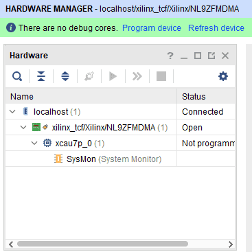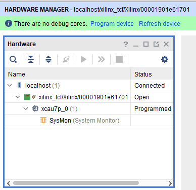 Step 4: If the device is detected successfully, then right click on the target device “xcau7p_0” and select “Program Device” as shown below.