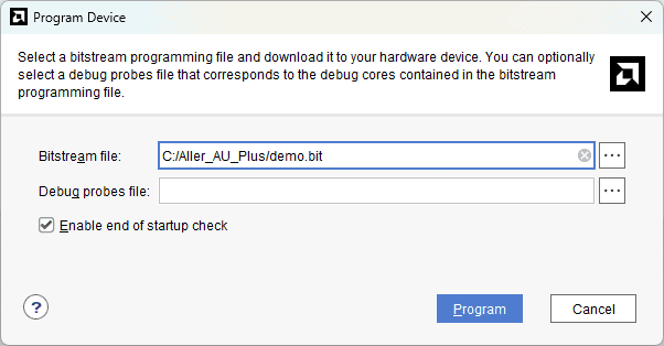 A ‘.bin’ or ‘.mcs’ file is required for programming Aller AU-Plus module’s onboard QSPI flash.