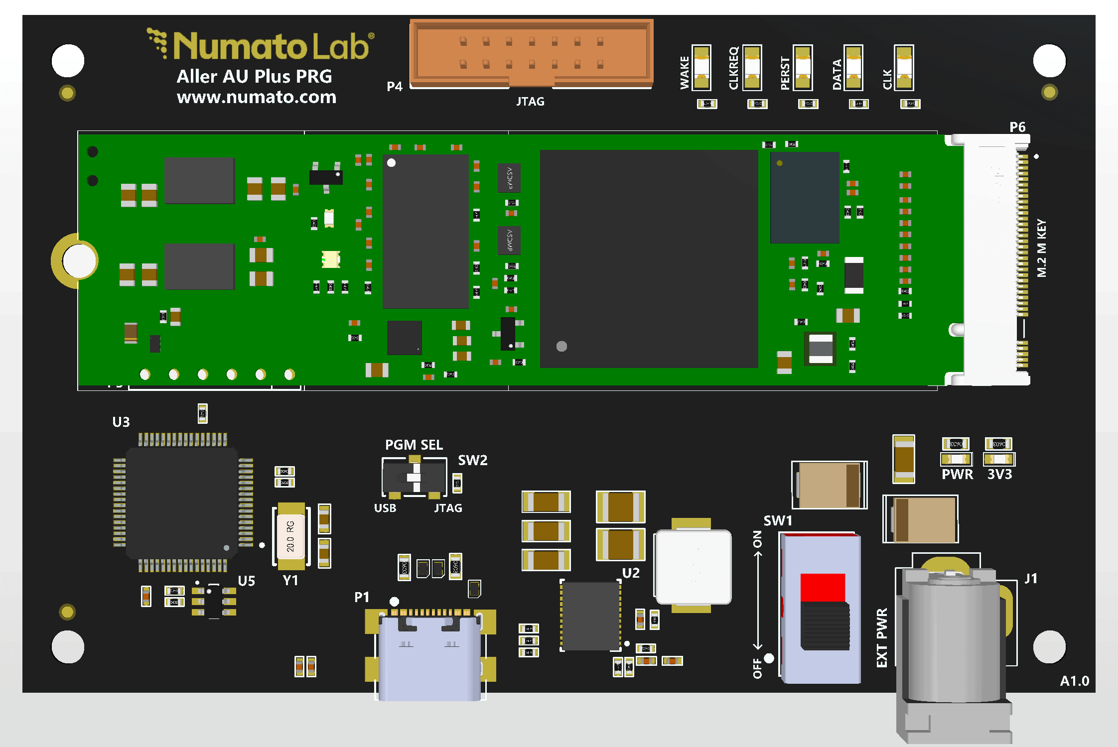 The M.2 female connector on the programmer is used to connect the Aller AU-Plus Module to the carrier.