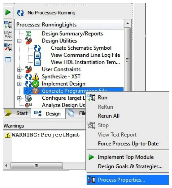 Step 1: Right-click on the “Generate Programming File” option in the “Processes” window.