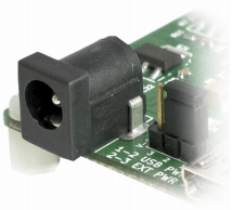 The Solder jumper is used to configure the power source for the board. The Solder jumper in pin 1 and 2 is shorted to switch the power source to the onboard USB port and pin 2 and 3 to use the external DC power.