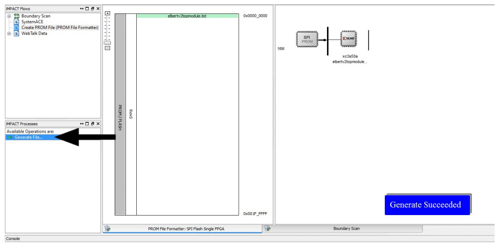 Step 4: Double click on “Generate File”. “Generate Succeeded” will be displayed as shown in fig below if the .mcs file is generated successfully.