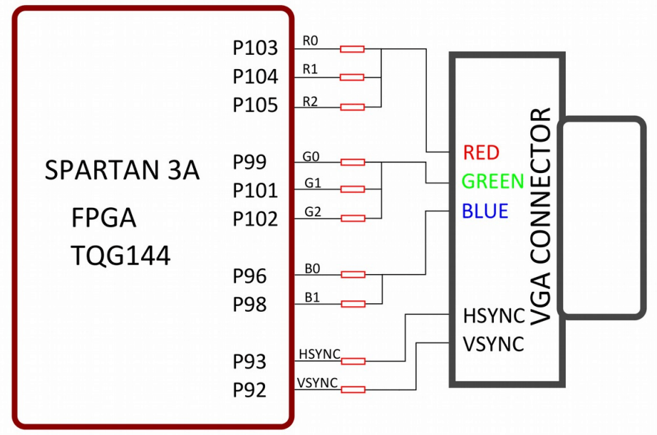 The VGA interface provides this board the ability to generate VGA signals from FPGA and display information any Display/monitor that supports standard VGA connector. This VGA interface uses resistor network-based DAC for easy use and code implementation. This 8 bit VGA interface can display up to 256 colors.