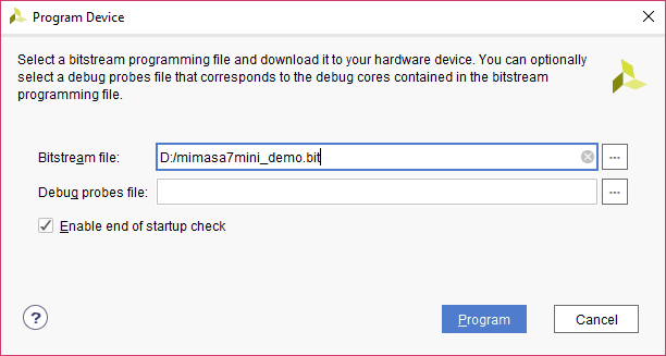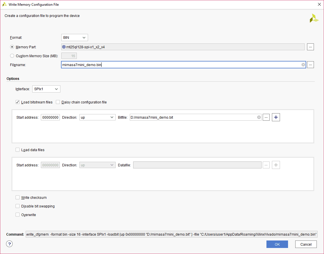 A .bin or .mcs file is required for programming Mimas A7 Mini’s onboard QSPI flash.