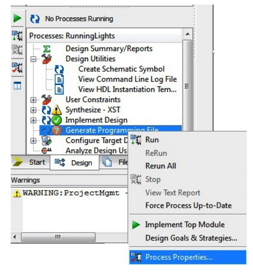 Step 1: Right-click on the “Generate Programming File” option in the “Processes” window.