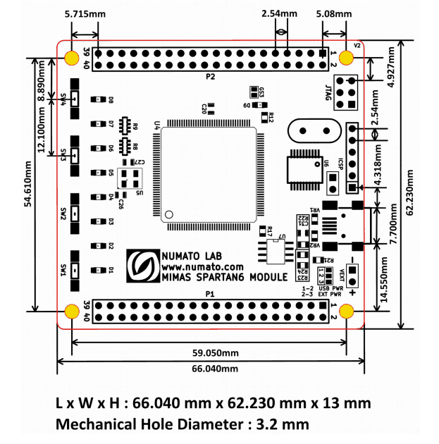 Mimas is an easy to use FPGA Development board featuring Xilinx Spartan-6 FPGA. Mimas is specially designed for experimenting and learning system design with FPGAs. This development board features Xilinx XC6SLX9 TQG144 FPGA with a maximum of 70 user IOs. The USB 2.0 interface provides fast and easy configuration download to the on-board SPI flash. You don’t need a programmer or special downloader cable to download the bitstream to the board.