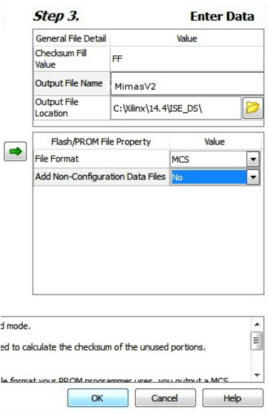 Step 3: Set an output file name and an output file location (the “.mcs” file will be generated at this location which will be required later for programming the FPGA), then click OK twice, then select the “.bit” file we already generated then click Open and click NO when it prompts to add another device file.