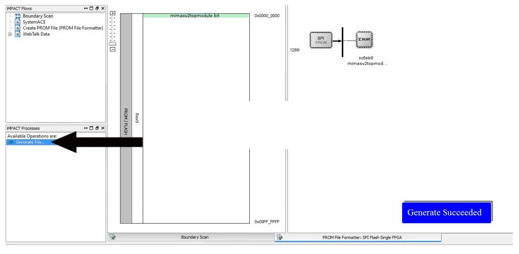 Step 4: Double click on “Generate File”. A message “Generate Succeeded” will be displayed as shown in fig below if the .mcs file is generated successfully.