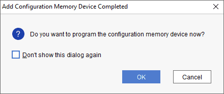 Step 5: Browse to the working .bin file or the .mcs file (whichever applicable) and click OK to program as shown below. If programming is successful, a confirmation message will be displayed.