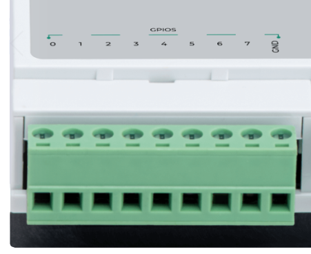 In contrast to GPIOs, Analog inputs can read voltages at any level between 0 to 3.3V. It is recommended to use a series resistor to protect the input from stray voltages and spikes. The internal Analog to Digital converter supports 12 bits resolution which is adequate for most applications. The table below summarizes the GPIO and Analog to Digital Converter input positions on the screw terminals.