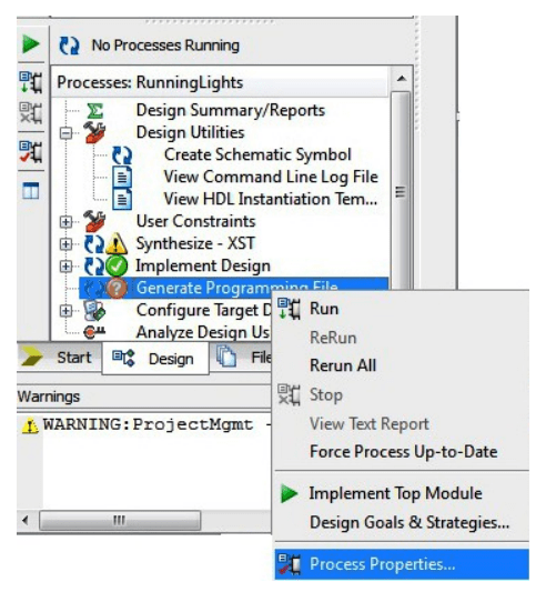 Step 1: Right click on the “Generate Programming File” option in “Processes” window.