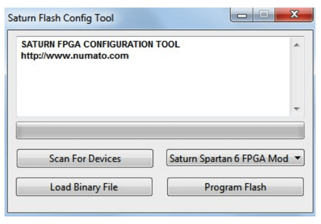 Step 1: Open Saturn Config Tool. Click “Scan for Devices” if the “Saturn Spartan 6 FPGA Module” is not detected automatically.