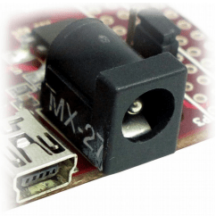 The onboard full-speed USB controller helps a Windows/Linux/Mac computer to communicate with this module. Use a USB A to Mini B cable to connect with a PC. By default, the module is powered from USB so make sure not to overcrowd unpowered USB hubs (the picture on the right shows USB Mini connector).