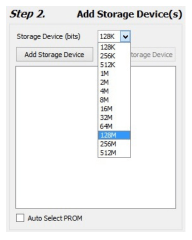 Step 2: Select 128M in Storage Device (bits).Now click on “Add Storage Device”, then the green arrow on the right side.