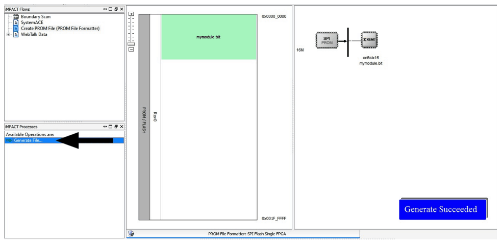 Step 4: Double click on “Generate File”. “Generate Succeeded” will be displayed as shown in fig below if the “.mcs” the file is generated successfully.