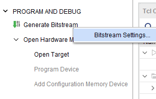 Step 1: It is recommended to generate a .bin bitstream file along with a .bit bitstream file. Click “Bitstream Settings”.