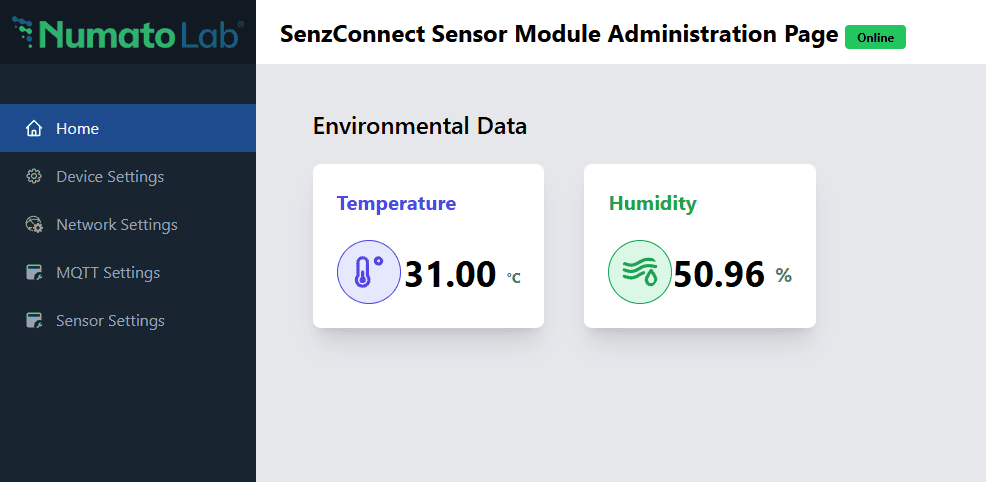 Important Note: After you have saved all your settings on the device (such as device configuration, network, sensor, or MQTT configurations), the changes will only take effect after the device is rebooted. You can reboot the device either: