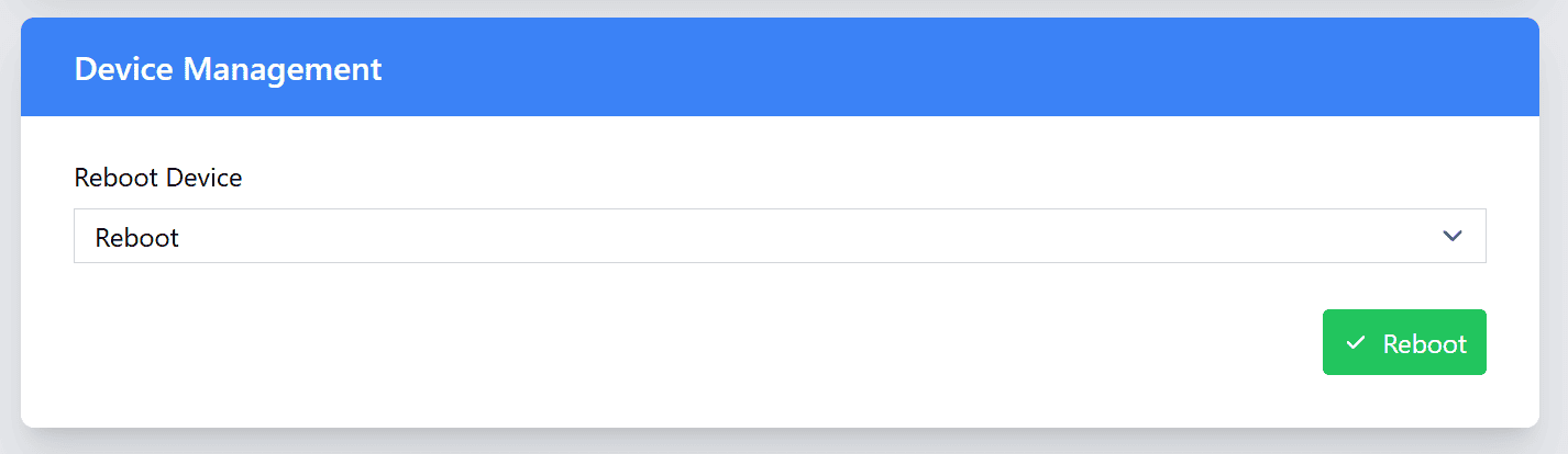 - From the Webpage: Use the Reboot option on the device management section to apply all settings.