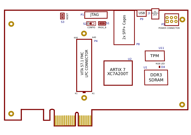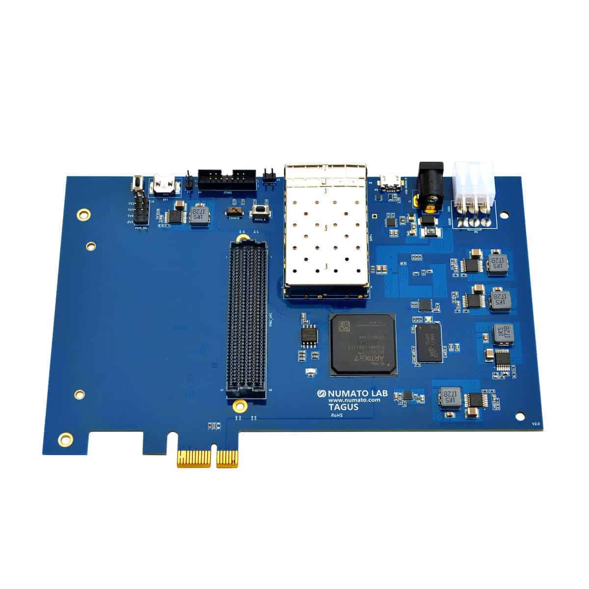 Tagus is an easy to use FPGA Development Board featuring Xilinx Artix-7 FPGA with x1 PCIe interface, Trusted Platform Module (ATXXXXXX), Dual SFP+ cages, and 2Gb DDR3 SDRAM. This board features Xilinx XC7A200T– FBG484I FPGA. The board features Low Pin Count (LPC) high-speed FMC connector conforming to ANSI/VITA 57.1 Standard for the purpose of adding additional features to the board by using custom or commercial off-the-shelf daughter boards.