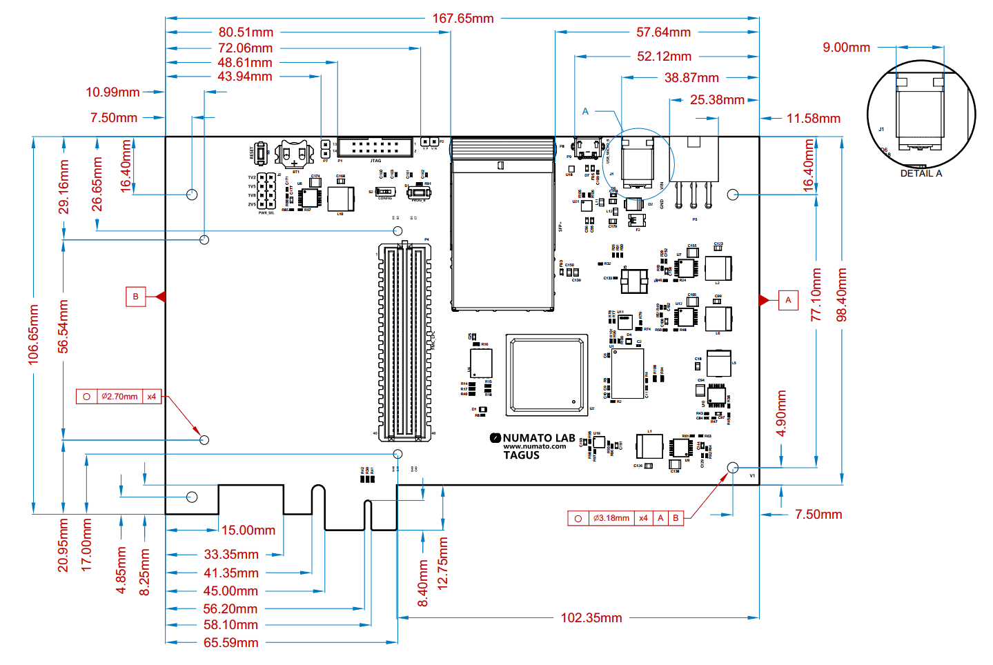 The following diagram should be used as a reference only. For detailed information, see Tagus’s schematics and mechanical dimensions at the end of this page.