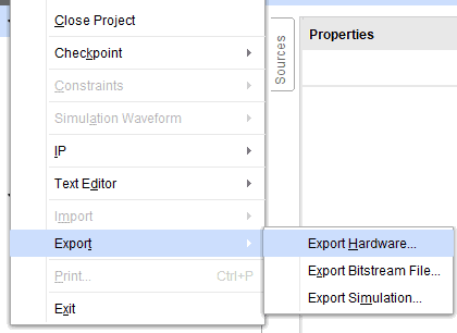 Once the bitstream is generated successfully, we need to export the hardware along with the bitstream. From the File menu, select Export -> Export Hardware.