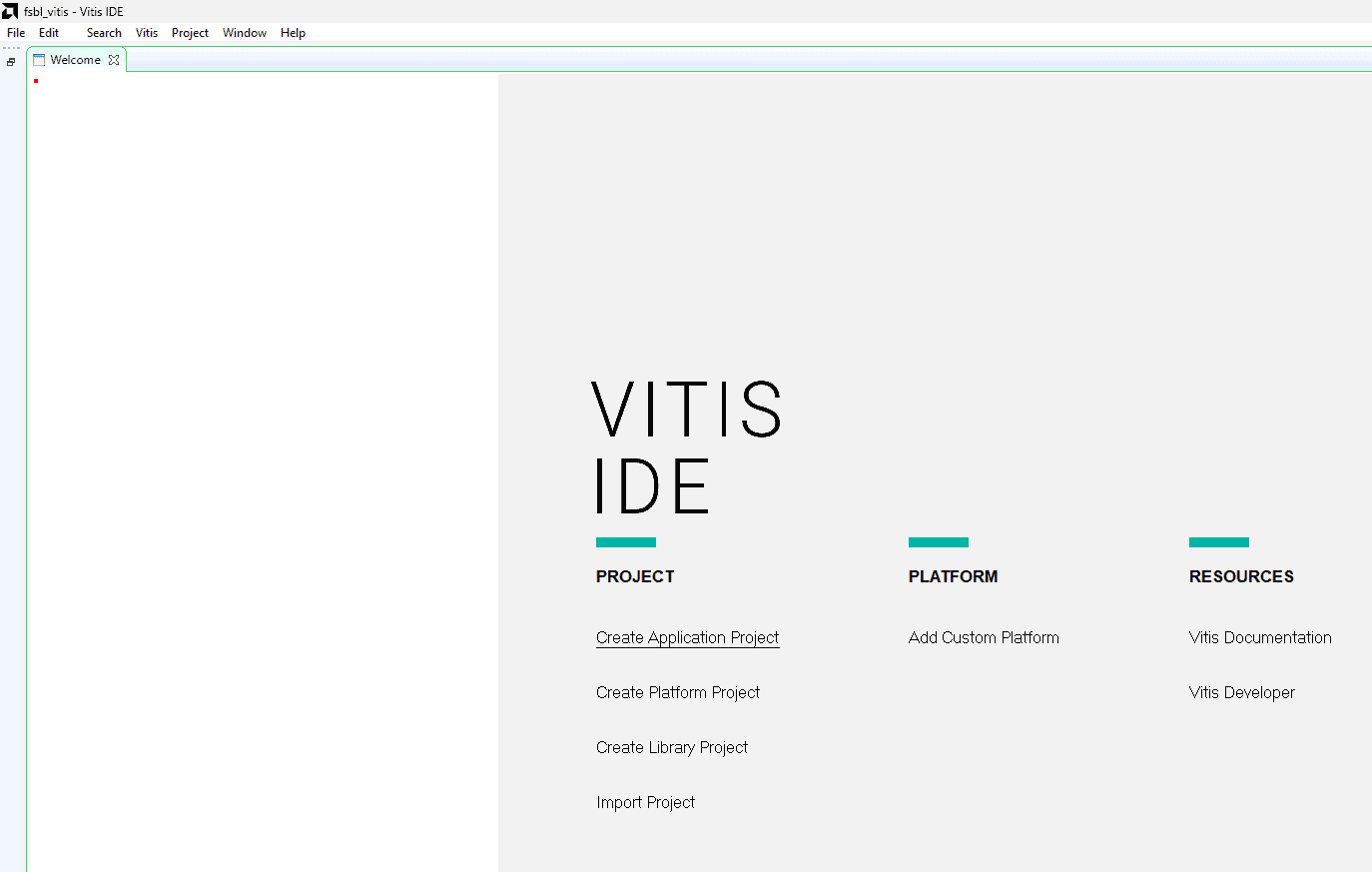 Once the Vitis window appears, select “Create Application Project”.