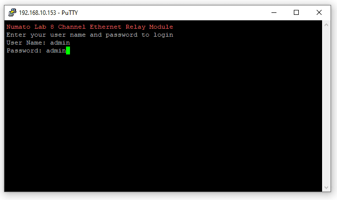 - You will be prompted to enter the username and password of the module (default is admin)