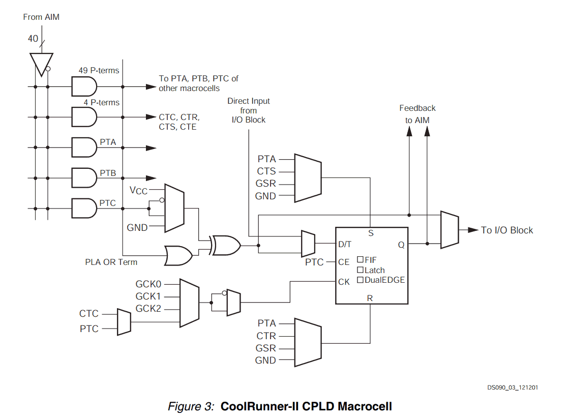CoolRunner-II CPLD Macrocell, Copyright: Xilinx Inc. Source: CoolRunner-II Datasheet