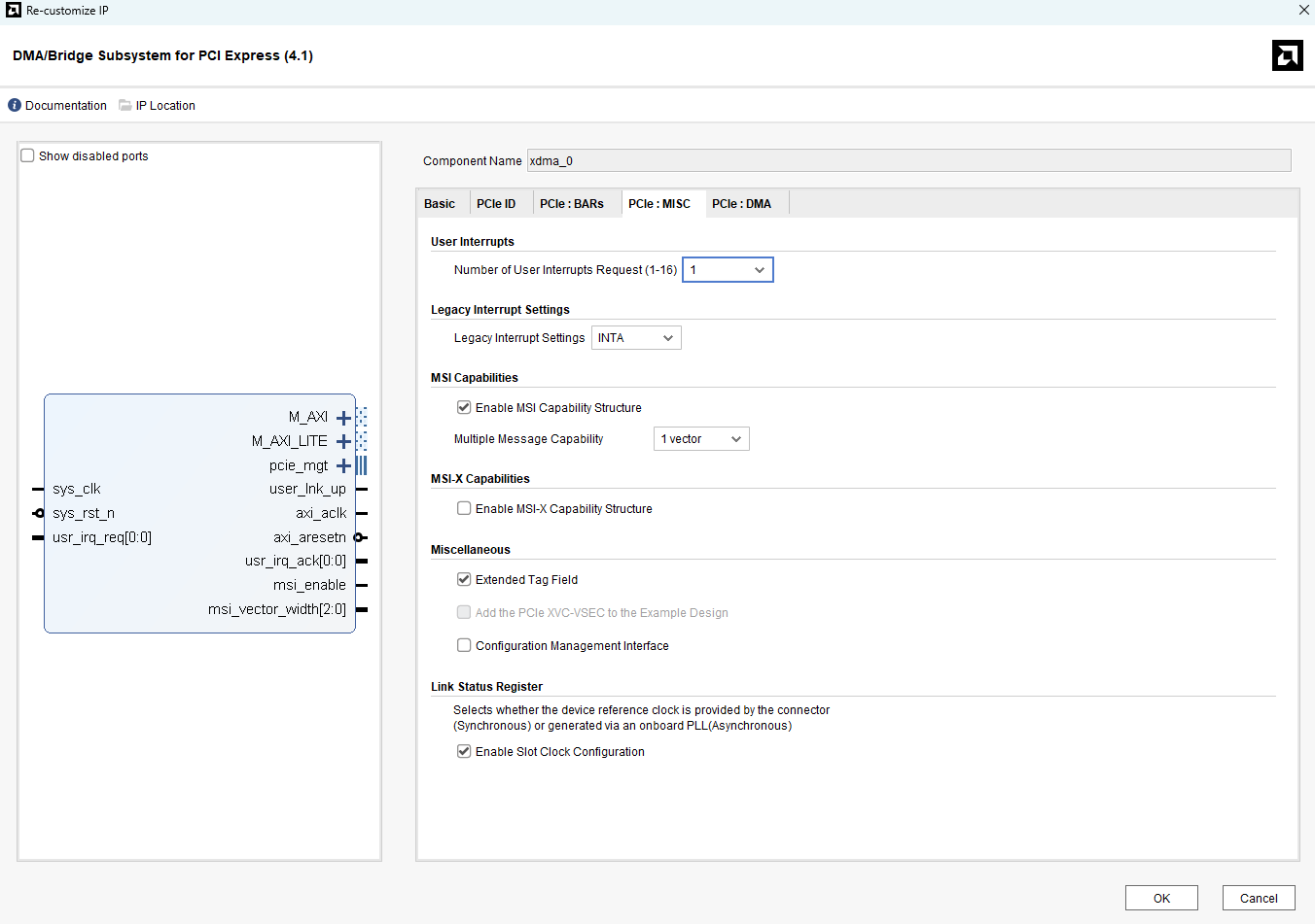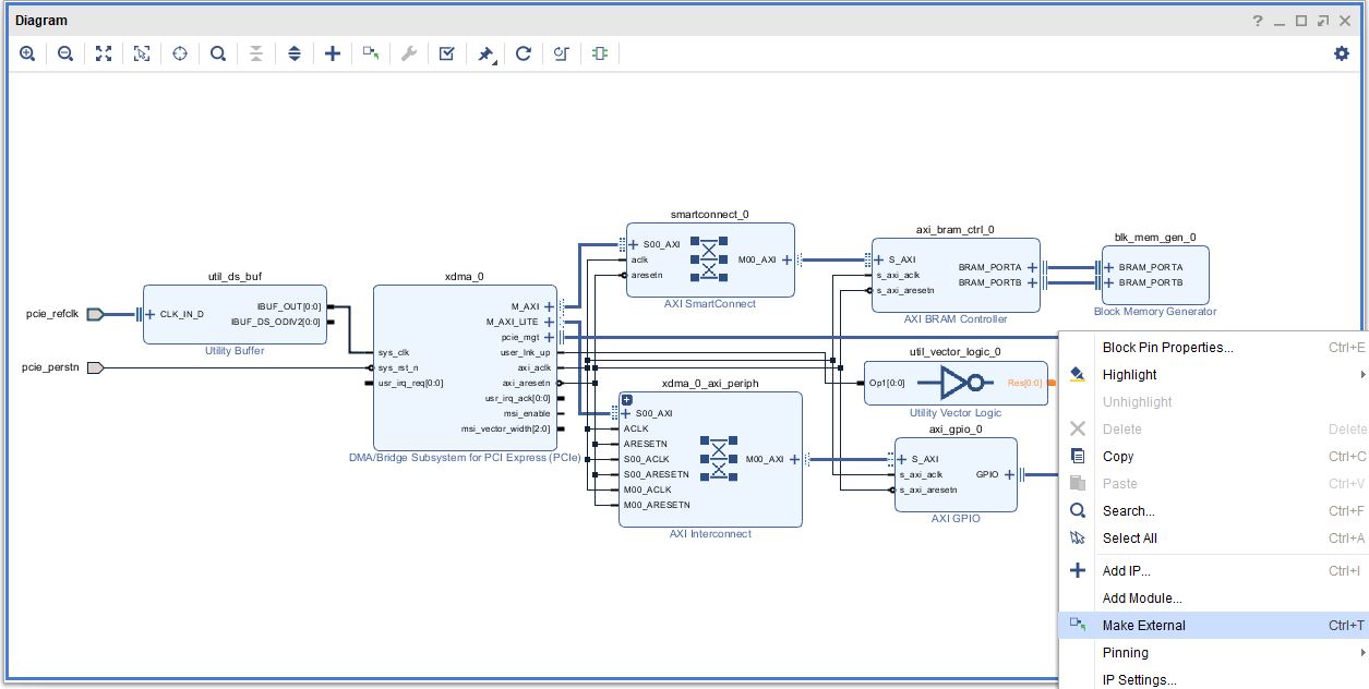 Creating PCIe DMA Design in Vivado