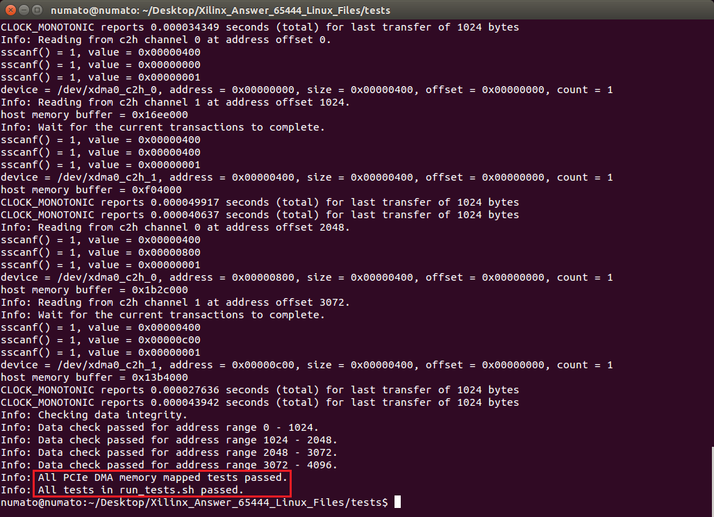 We can now test the DMA. This can be done by running the script “run_test.sh” using the following command: