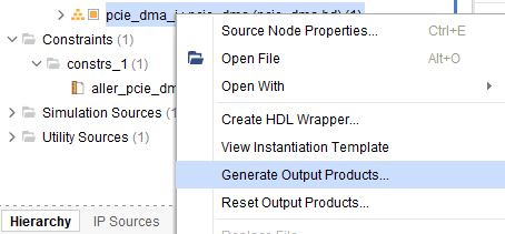 We have to add constraints for some ports in the design. Since we have BSP, most of the ports would be assigned from the BSP. We will have to manually assign for the rest of the ports. Right-click on “Constraints” in the Sources window, and select “Add Sources” as shown below.