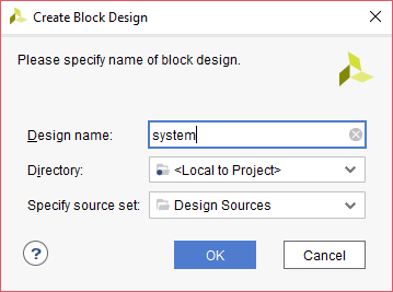 Under the “Flow Navigator” panel, select “Create Block Design” under the IP Integrator section. Enter a name for the block design and click “OK”. An empty block design will be created.