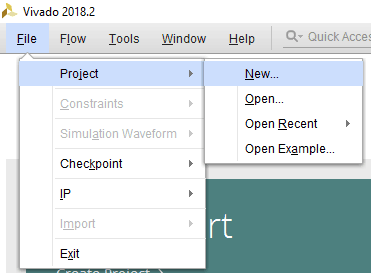 Open the Vivado Design suite, go to “File->Project ->New” to create a new project. The “New project” window will pop up. Click “Next”.