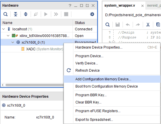 Download and install Vivado Board Support Package files for Nereid from here. Follow the README.md file on how to install Vivado Board Support Package files for Numato Lab’s boards.