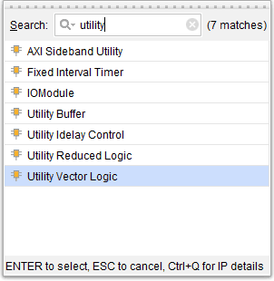 Right-click and select “Add IP”, search for utility and add “Utility Vector Logic” IP to the design.