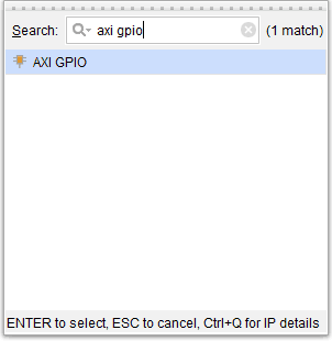Right-click and select “Add IP”, search and add “AXI GPIO” IP to the design.