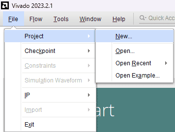 Launch Vivado Design Suite, go to “File->Project->New” to create a new project. The “New project” wizard will pop up. Click “Next” to continue.
