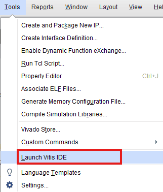 Select Launch Vitis IDE from the Tools menu.