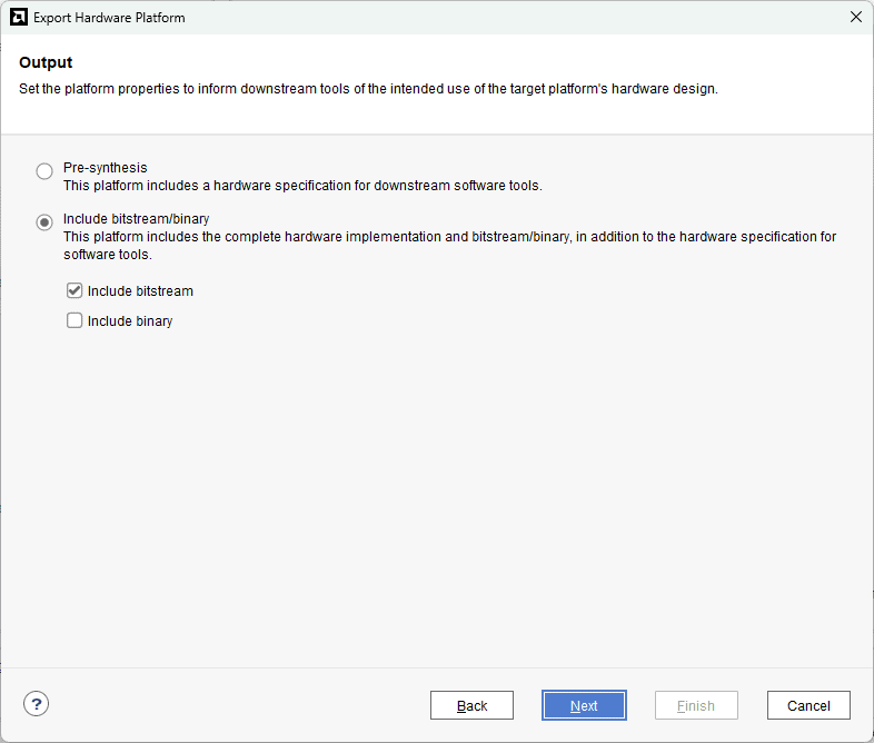 Check “Include bitstream”, keep “Export to:” default, and click OK.