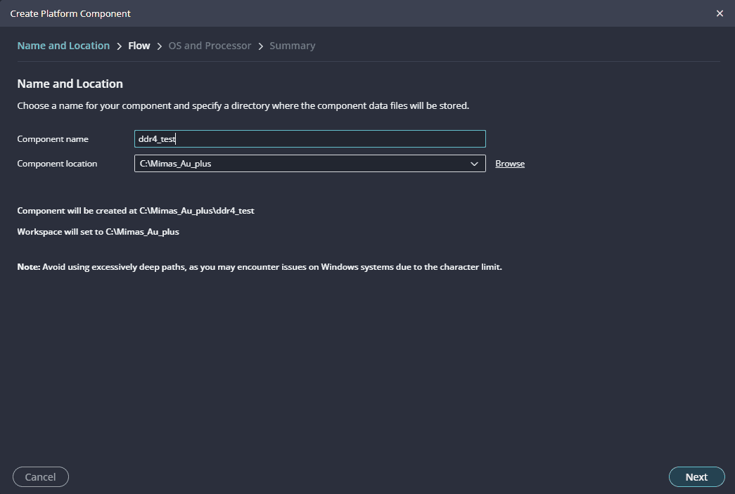 Give the component name and the platform location and click on “Next”.