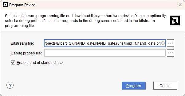 Select the NAND_gate out bitstream and click “Program”.