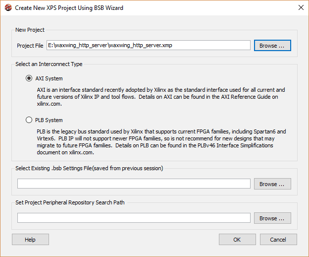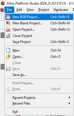 Open Xilinx Platform Studio from Start Menu. Go to ‘File’ and select ‘New BSB Project…’. It will open XPS new project wizard.